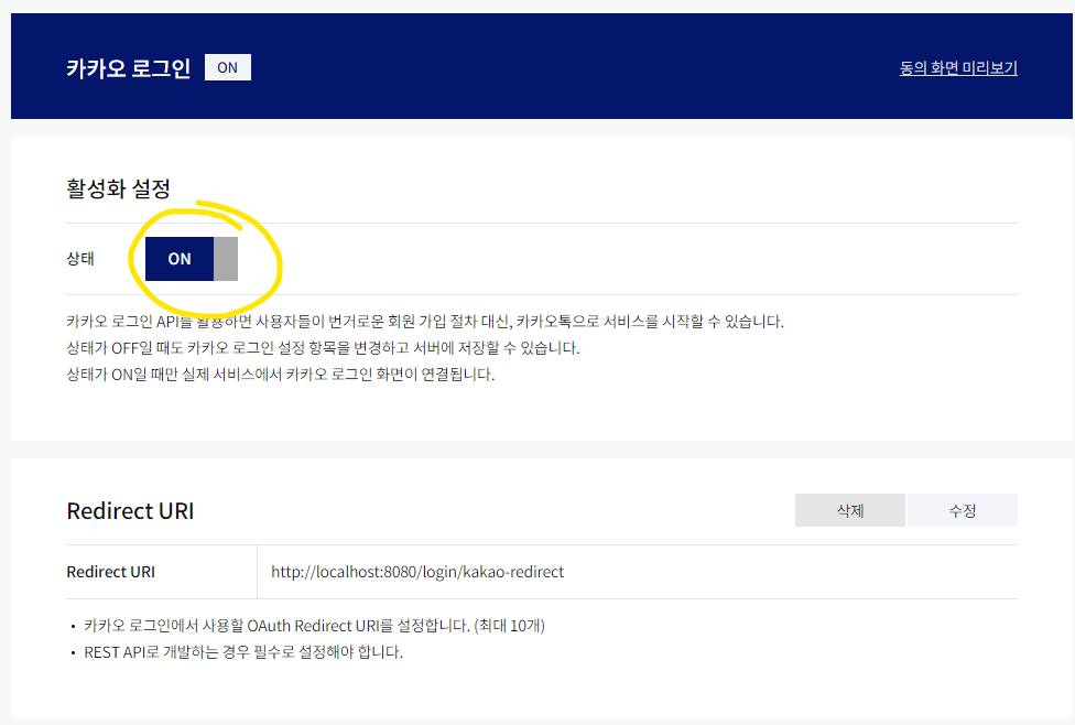redirect URI = 카카오에 요청 보내면 카카오가 응답을 돌려줘야되잖아요? 그 응답을 redirect URI에 보내줍니다.