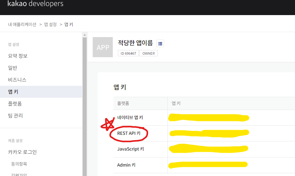 1. 앱 키 확인