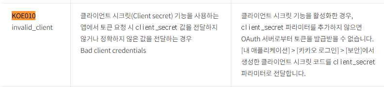 (링크가 안 들어가지면 Kakao Developers 홈 - 우측상단의 문서보기 클릭 - 카카오로그인 이해하기 클릭 - 좌측 하단에 문제해결 클릭)