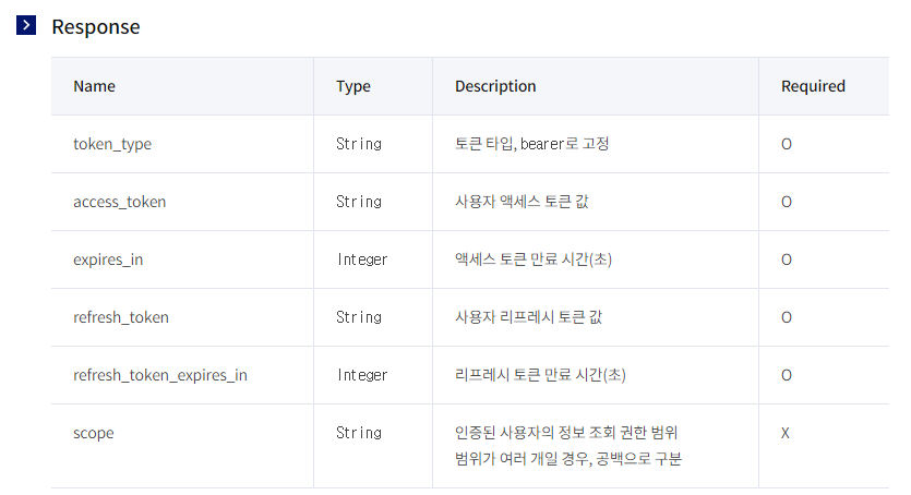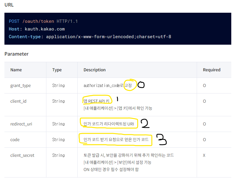 //0번 파라미터 grant_type 입니다 authorization_code로 고정이라니 고정등록해줍니다