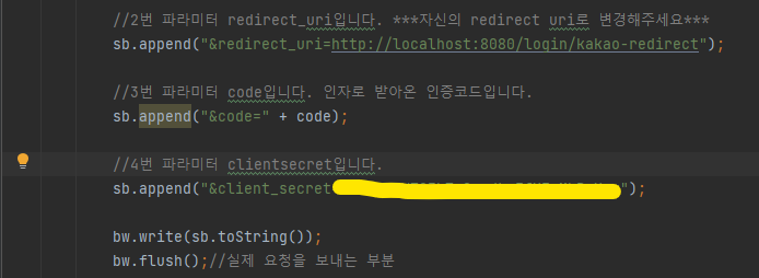 String strUrl = "https://kauth.kakao.com/oauth/token"; //request를 보낼 주소
