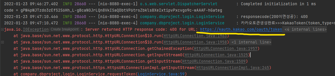 KakaoToken kakaoToken = loginService.requestToken(code);