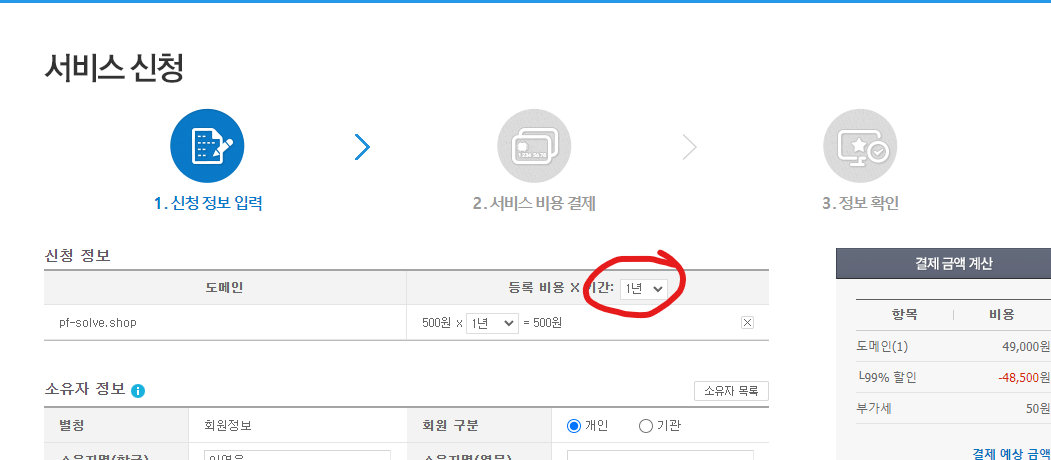 1. 원하는 도메인 입력하고