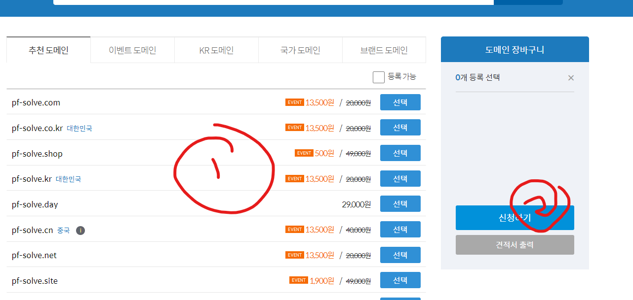 1. 원하는 도메인 선택하고