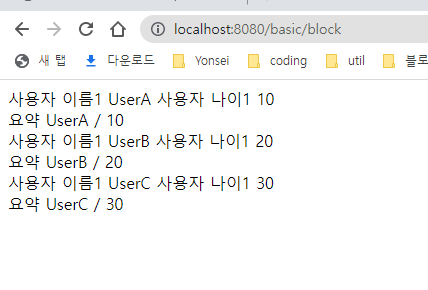 요약 <span th:text="${user.username} + ' / ' + ${user.age}"></span>