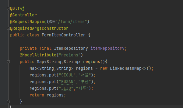 FormItemController에 있는 모든 메소드의 모델에 "regions":regions 들어감