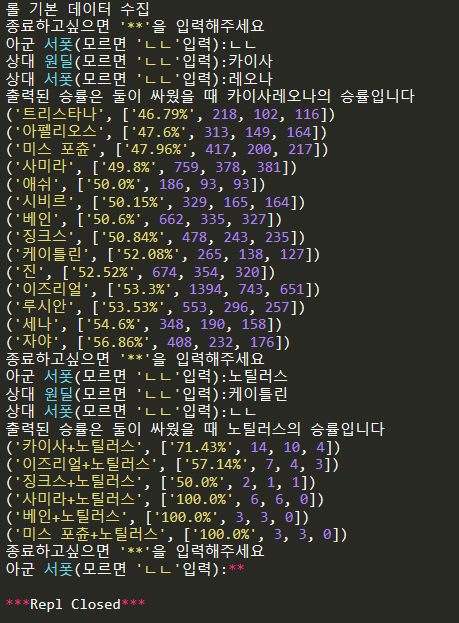 lose_champ = str(data[win_team][posa])+'+'+str(data[win_team][posb])