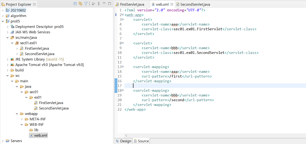 <servlet>태그와 <servlet-mapping>태그를 <servlet-name>태그로 연결