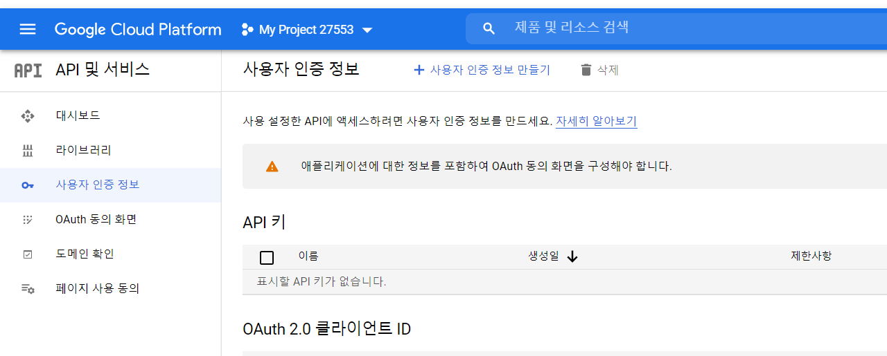 1. 우선 구글스프레드시트를 사용하기 위한 구글 플랫폼 프로젝트를 생성해야합니다.