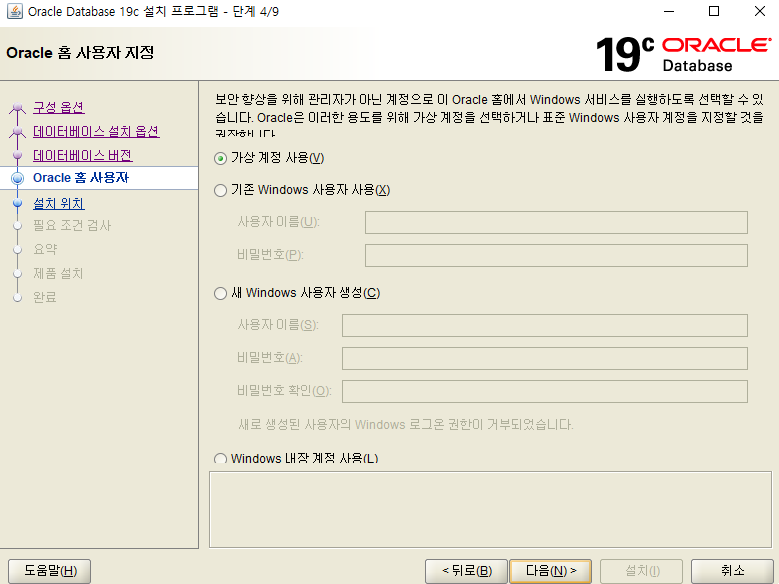 오라클(Oracle) 19c 설치 (Windows 10환경)